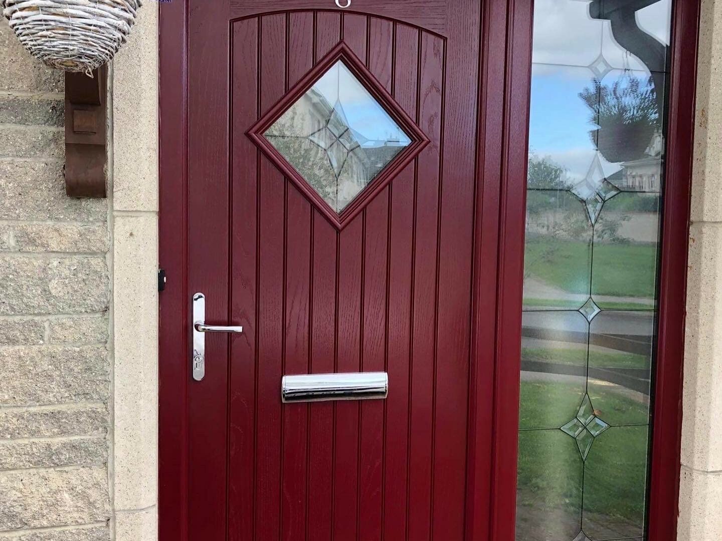 PVC outerframe White, Cream, Red, Blue, Green, Bog Oak, Rosewood and Light Oak & Sidelight colour: available using 28mm triple glazed sidelights