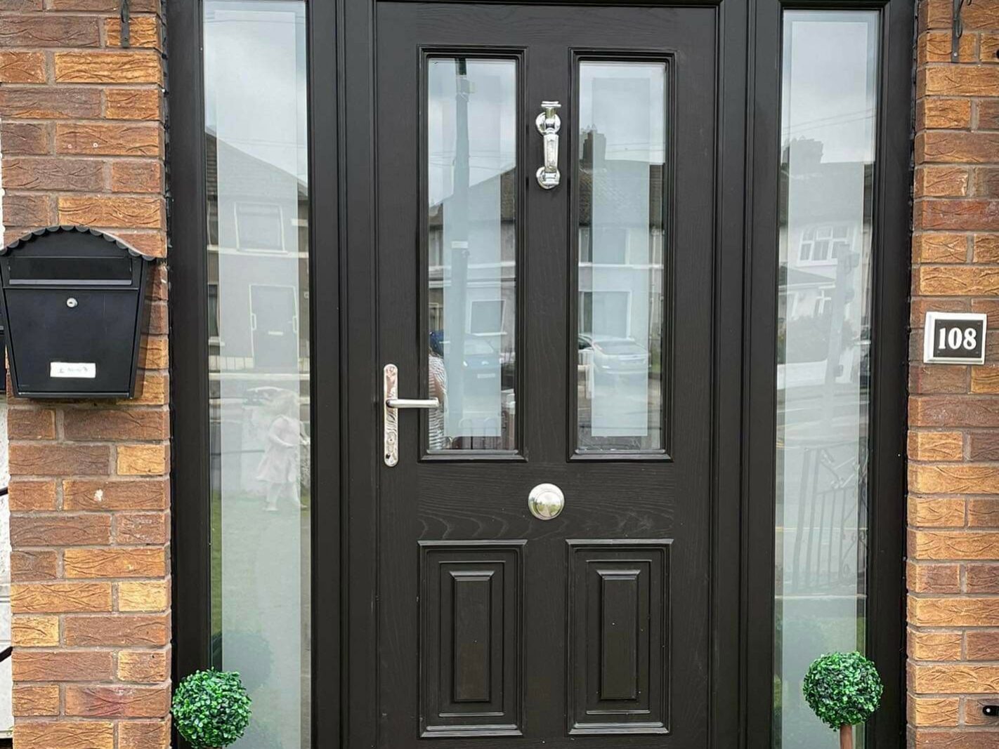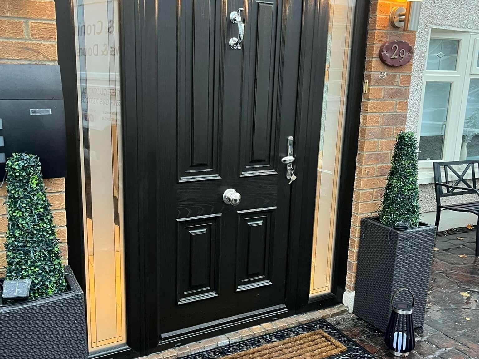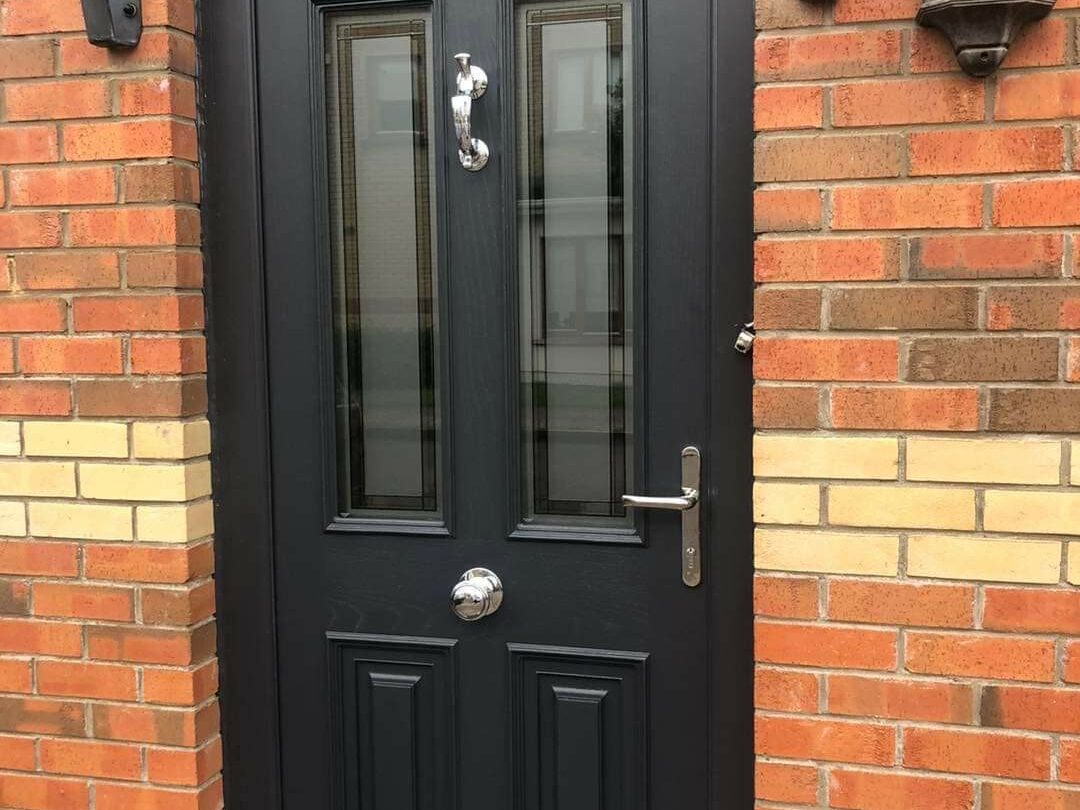 Hardware: High quality handle, letter plate, door knocker solid or with spyview MANUFACTURED TO BS 7412